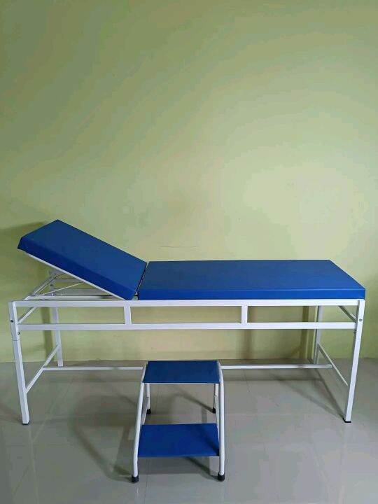 Dengan spesifikasi sebagai berikut Matras : D14 Tinggi matras : 6cm Rangka Meja Periksa Besi Hollow : 180cm Ukuran : 1.5x3cm Tebal : 1.1mm (Berikut Powder Coating) Rangka Tangga Pipa Besi 3/4 di Powder Coating 1.1mm